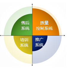 質(zhì)量控制系統(tǒng)、售后服務系統(tǒng)、應用培訓系統(tǒng)、獨特的市場推廣系統(tǒng),讓經(jīng)銷商60天內(nèi)快速賺錢